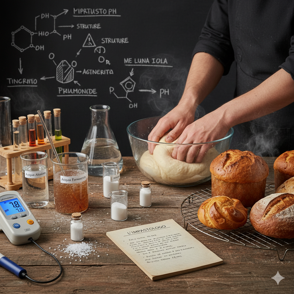 L’equilibrio tra forza, fermentazione e consapevolezza C’è un ingrediente che tutti usiamo ogni giorno, ma di cui quasi nessuno parla davvero: l’acqua.Sembra la parte più semplice dell’impasto, e invece è quella che nasconde la scienza più silenziosa e potente.Nei laboratori dei grandi maestri si discute di farine, lieviti, temperature, ma raramente si sente parlare di pH, di alcalinità o di acque strutturate.Eppure, dietro un impasto elastico o uno collassato, spesso non c’è un errore nella farina… ma nell’acqua. Cos’è davvero l’acqua alcalina L’acqua alcalina è quella che presenta un pH superiore a 7.Più è alto il numero, più l’acqua tende a neutralizzare l’acidità.Un pH 8, ad esempio, indica un’acqua leggermente basica; un pH 9 è già piuttosto elevato.Nel corpo umano, quest’acqua viene associata a effetti “depurativi” o “antiacido”, ma in un impasto agisce in modo molto più sottile e complesso.Non basta dire che “è buona o cattiva”: serve capire chi governa la massa, se il glutine o i lieviti. Quando il pH incontra il glutine Le proteine principali del grano, gliadina e glutenina, sono sensibili al pH.In ambiente leggermente alcalino (7,5–8), queste proteine sviluppano una maglia glutinica più compatta e resistente.Il risultato è un impasto che regge meglio la manipolazione, tiene più aria e resiste alle lunghe lievitazioni.Ecco perché, in teoria, un pizzico di alcalinità rafforza il corpo dell’impasto.È utile soprattutto nei grandi lievitati dolci come panettoni, colombe, brioches o impasti con alte percentuali di grassi, zuccheri e tuorli, che tendono a “rompere” la maglia glutinica. In pratica: un’acqua con pH 7,5–7,8 dà “energia strutturale” al glutine. Ma il lievito non è dello stesso parere I lieviti, invece, sono creature delicate.Il Saccharomyces cerevisiae, protagonista delle nostre fermentazioni, lavora in un ambiente lievemente acido, tra pH 4,5 e 6.È in questo intervallo che gli enzimi scompongono gli zuccheri, producendo anidride carbonica e aromi. Quando il pH sale troppo: * la fermentazione rallenta,* la produzione di CO₂ cala,* e gli aromi diventano meno complessi.Un impasto troppo alcalino, dunque, cresce con più lentezza e rischia di sviluppare meno profumi e acidità bilanciata. In sintesi: l’acqua alcalina fortifica la struttura, ma indebolisce la vita del lievito. L’arte dell’equilibrio La verità, come sempre, sta nel mezzo.Un’acqua leggermente alcalina (pH 7,3–7,6) può essere una risorsa preziosa, soprattutto: * per riequilibrare un lievito madre troppo acido,* per dare sostegno a un impasto ricco di grassi o zuccheri,* o per ridurre l’eccessiva acidità di un prefermento “stanco”.Ma superare pH 8 significa rallentare la fermentazione e alterare l’equilibrio del sistema enzimatico.L’acqua alcalina, quindi, non è un ingrediente quotidiano: è un correttivo intelligente, da usare solo quando serve. Il mistero dell’acqua fermentata Un discorso a parte merita l’acqua fermentata, ricca di microbi e acidi organici prodotti da frutta, cereali o erbe lasciate a macerare.Il suo pH è tendenzialmente acido (3,5–5), l’opposto dell’acqua alcalina.Usarla in un preimpasto favorisce la vitalità dei lieviti e arricchisce di aromi la massa. E allora, ecco un’idea “da impastologo”: usare acqua fermentata nel preimpasto per stimolare la flora microbica,e acqua leggermente alcalina nel rinfresco per rinforzare la struttura del glutine.Un approccio bilanciato, quasi alchemico, che unisce la forza della base e la vita dell’acido. Perché nessuno la usa La risposta è semplice e amara insieme: 1. Costa troppo. Un litro d’acqua alcalina commerciale costa anche 3–4 €, mentre quella di rubinetto è praticamente gratuita.2. Richiede controllo. Serve misurare il pH, conoscere la durezza, testare la reazione della farina.3. Non è “visibile” al cliente. Un impasto più forte non cambia radicalmente il gusto; quindi il vantaggio non si percepisce al morso. In pratica, chi impasta per mestiere preferisce acque neutre e stabili, più facili da gestire e sempre replicabili. La via dell’artigiano: creare la propria acqua Un vero impastologo non compra soluzioni: le crea.Puoi ottenere un’acqua leggermente alcalina (pH 7,6–7,8) aggiungendo 0,5–1 g di bicarbonato di sodio per litro.È una soluzione economica, naturale e totalmente controllabile.Oppure puoi sfruttare l’acqua “dura” del rubinetto, spesso già ricca di sali alcalini che aiutano la maglia glutinica. Seguimi sui Social per Altri Contenuti!Se questo contenuto ti è piaciuto, non perderti tutti i dettagli e le curiosità. Seguimi sui miei canali social dove condivido video passo passo, consigli utili e tante altre ricette irresistibili.Trovi tutto su Instagram, Facebook, TikTok, Threads e anche su WhatsApp: cerca @Impastologo e unisciti alla nostra community di appassionati di cucina. Ti aspetto per scoprire insieme nuovi impasti, idee e sapori! Vuoi approfondire ancora di più?Se sei curioso di scoprire tutti i segreti dell’arte bianca, tecniche, appunti pratici e retroscena da vero “impastologo”, non perderti il mio libro: “Agenda di un Impastologo”, disponibile su Amazon.È molto più di un libro: è il tuo compagno di viaggio tra farine, lieviti e impasti!Lo trovi qui: https://amzn.eu/d/6iTOE16